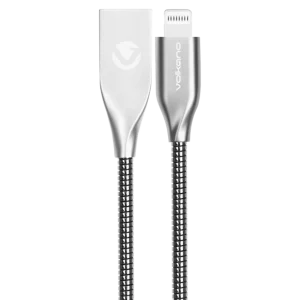 Volkano Iron Series Round Metallic Spring MFI Lightning Cable 6ft - Silver