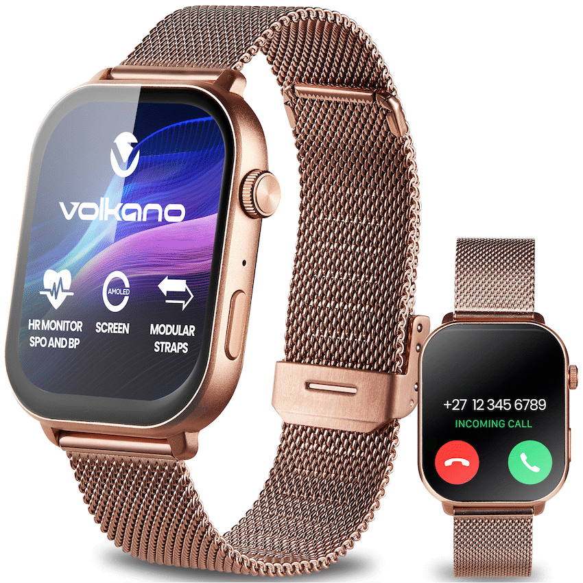 Volkano Trinity Series Smartwatch with Metal Mesh Strap - Gold