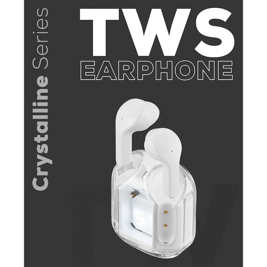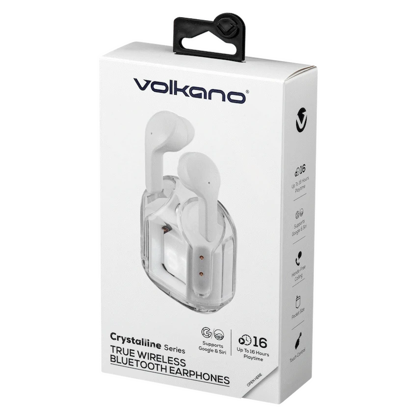 Volkano Crystalline Series TWS Earphone – White, Hardbox