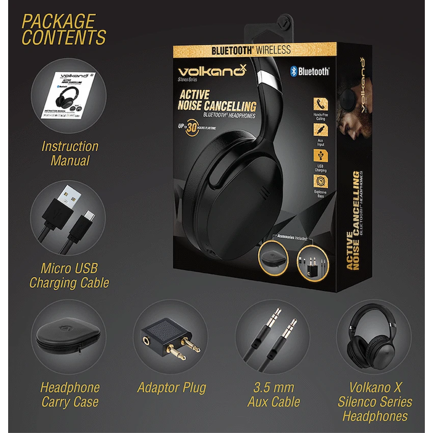 Experience uninterrupted audio with the VolkanoX Silenco Noise Cancelling Bluetooth Headphones—the perfect combination of comfort, clarity, and long-lasting battery life. Whether you’re commuting, working, or relaxing, these premium over-ear headphones with Active Noise Cancelling technology help eliminate background noise for a focused, immersive sound experience.