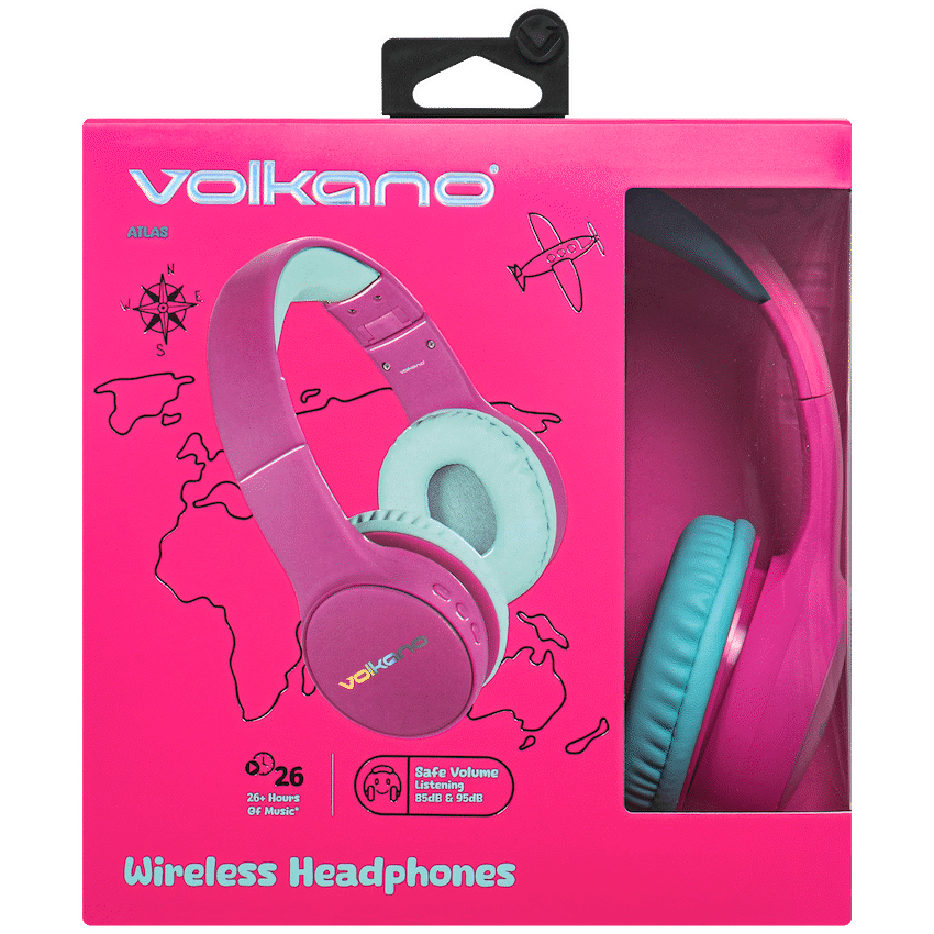 The Volkano Atlas Bluetooth Headphones are designed for safe, comfortable, and fun listening – whether it’s for school, play, or travel. With adjustable volume-limiting settings (85dB & 95dB), these headphones help protect your child’s hearing while delivering crisp, clear sound. With up to 26 hours of wireless playback and soft cushioned earcups, they can enjoy extended listening in total comfort. The built-in mic supports calls and online learning, while the wireless Bluetooth design gives them the freedom to move. Backed by the trusted Volkano brand, these headphones are the perfect blend of safety, comfort, and functionality. Feature Highlights Safe Volume Limiting – Protects young ears with 85dB & 95dB modes Bluetooth Wireless Freedom – No cables, just easy movement and pairing Up to 26 Hours Playtime – Great for long trips, school, or home use Cushioned Comfort – Soft earcups and headband Built-In Mic for Calls – Ideal for voice chats or virtual classes Wired Option Included – Use the 3.5mm jack if battery runs low Technical Specifications Chipset: JL Sensitivity: 85 ±3dB / 95 ±3dB Battery: 250mAh Charging Input: 5V, 180mA Playback Time: Playtime(50% Volume at 85dB, Light Off): 26 Hours Playtime(100% Volume at 85dB, Light Off): 25 Hours Playtime(50% Volume at 85dB, Light On): 9.2 Hours Playtime(100% Volume at 85dB, Light On): 8.5 Hours Playtime(50% Volume at 95dB, Light Off): 24 Hours Playtime(100% Volume at 95dB, Light Off): 23 Hours Playtime(50% Volume at 95dB, Light On): 9 Hours Playtime(100% Volume at 95dB, Light On): 8 Hours What’s in the Box Volkano Atlas Bluetooth Padded Headphones with dB Switch Function USB-C Charging Cable 3.5mm Audio Jack Cable Instruction Manual Let your kids listen safely, comfortably, and wirelessly with the trusted quality of Volkano. Safe Volume Mode Switching – 85db & 95dB Up to 25-Hour Battery Life Wireless Bluetooth Convenience Soft, Cushioned Earcups Built-In Mic for Easy Calls