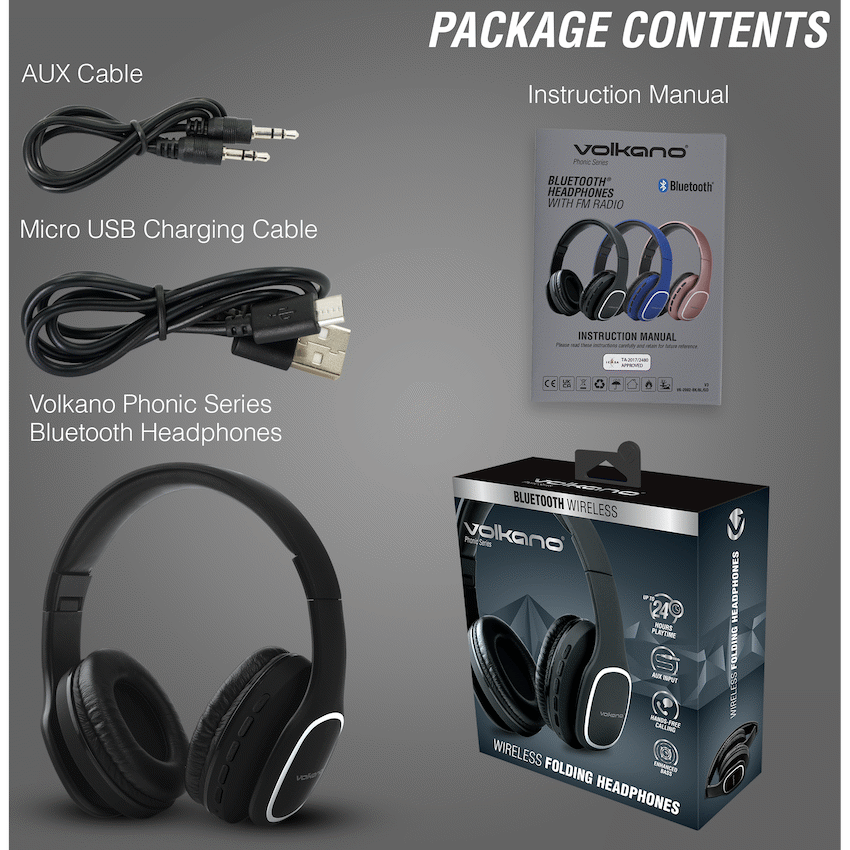 Volkano Phonic Series Bluetooth Full Size Headphones – Black