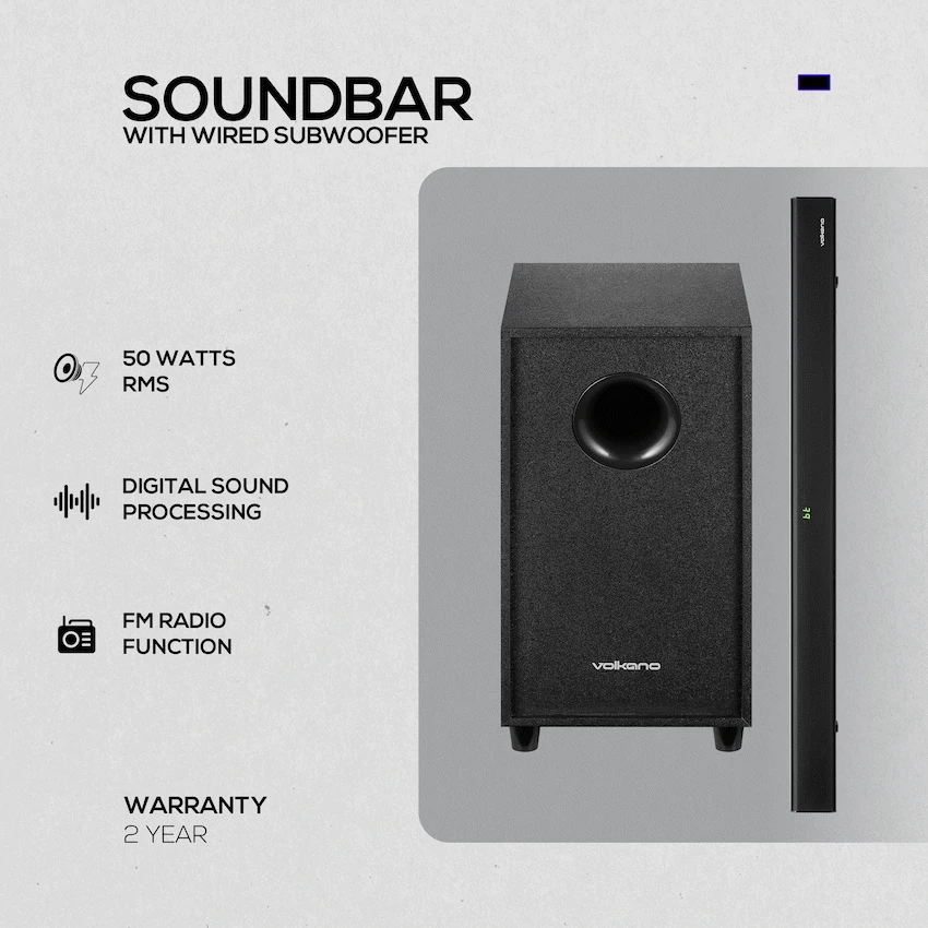 Upgrade your home audio without breaking the bank with the Volkano Cascade Series 50W Bluetooth Soundbar with Wired Subwoofer. Perfect for South Africans seeking an affordable soundbar with subwoofer, this system delivers impressive sound performance for movies, music, and everyday entertainment.