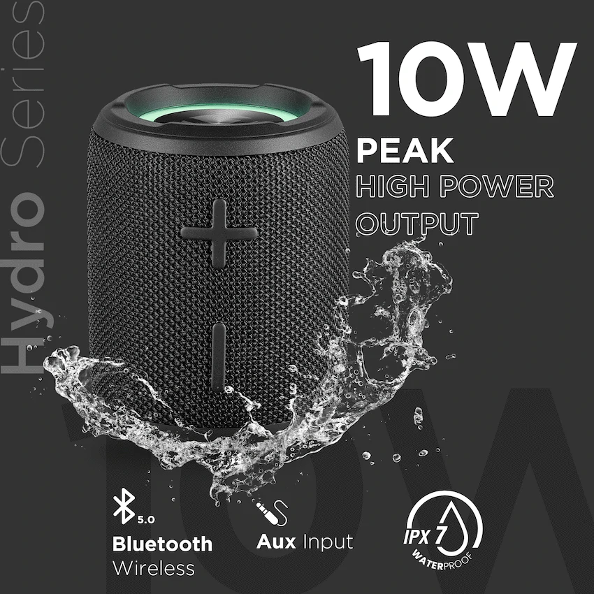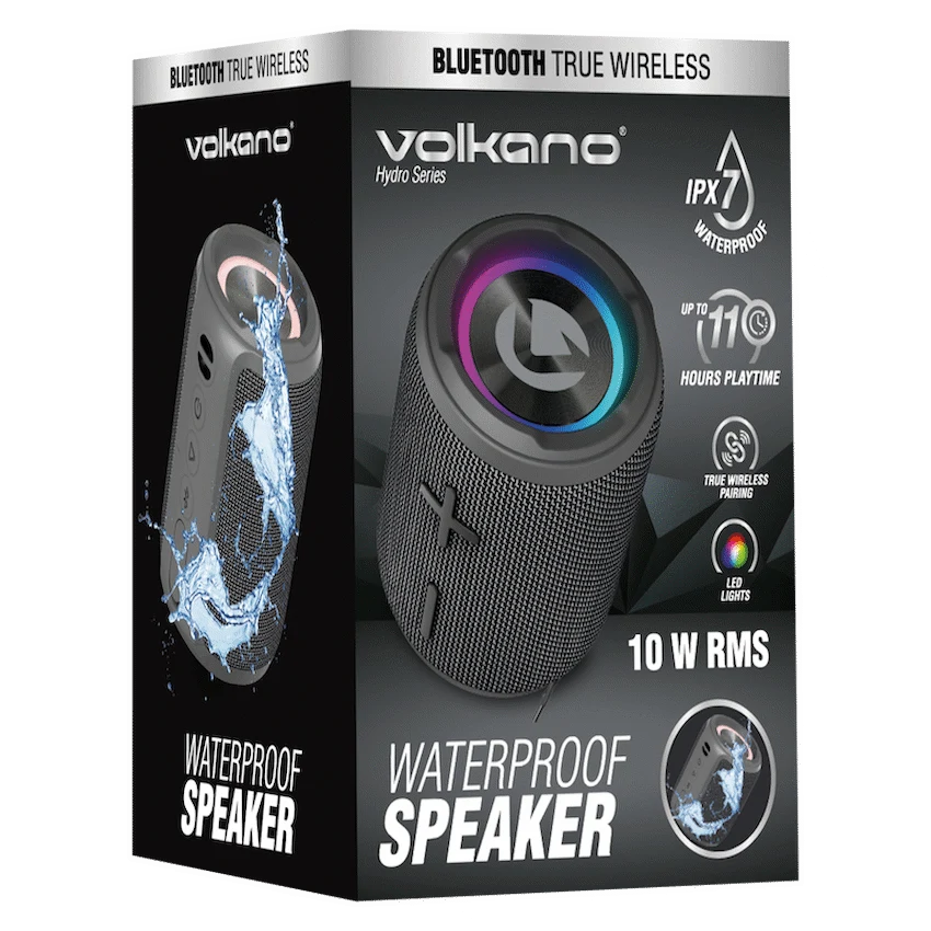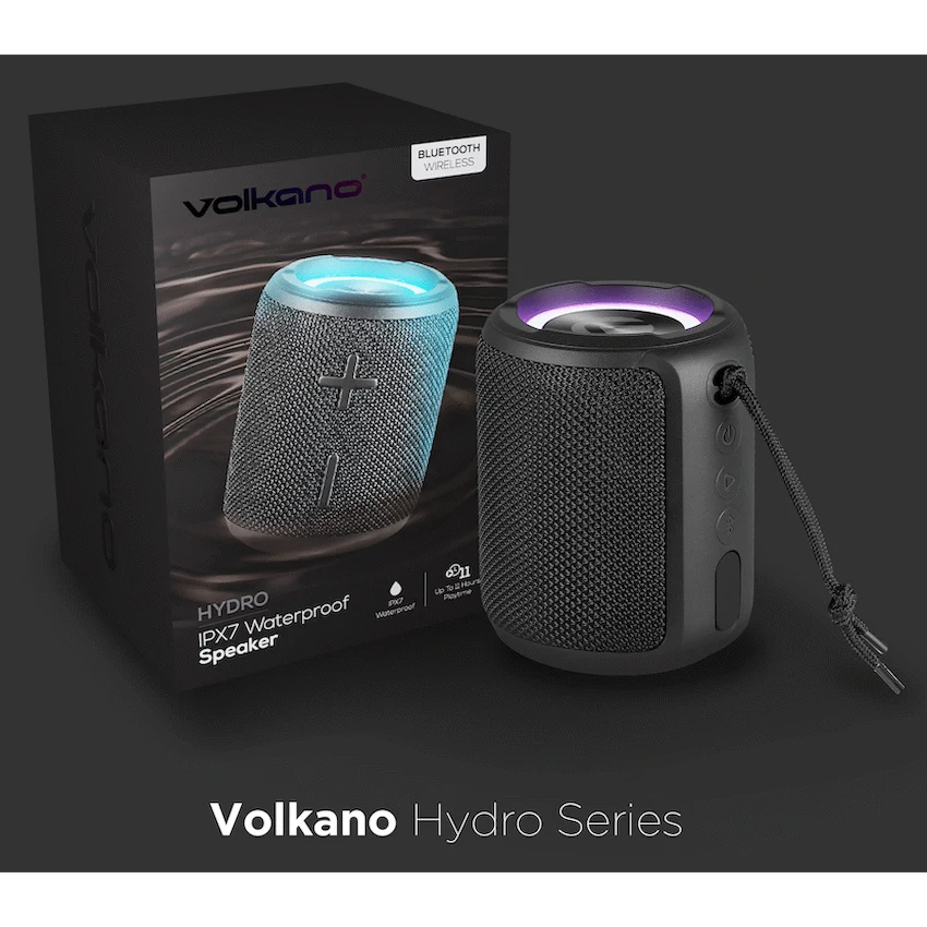 The Hydro series Waterproof Bluetooth Speaker brought to you by familiar household brand Volkano!