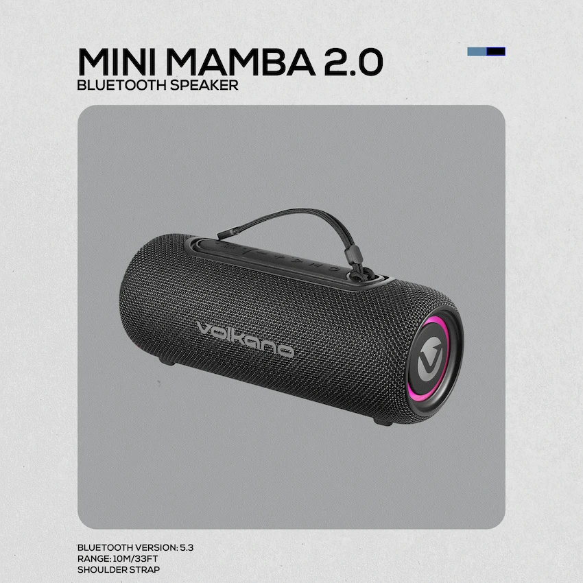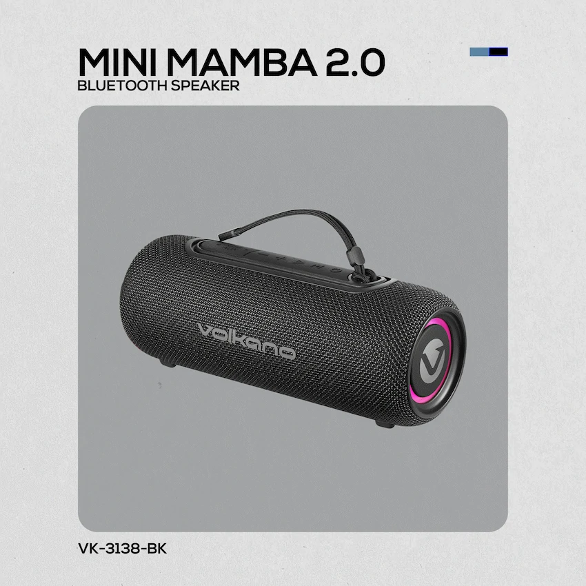 Take your music anywhere with the Volkano Mini Mamba 2.0 Series Portable Bluetooth Speaker. Compact yet powerful, this speaker delivers 7W RMS output with dual drivers for clear, balanced sound. Perfect for South African users who want both durability and fun features, the Mini Mamba 2.0 is built with an IPX5 water-resistant design, making it ideal for the outdoors, poolside, or gym sessions.