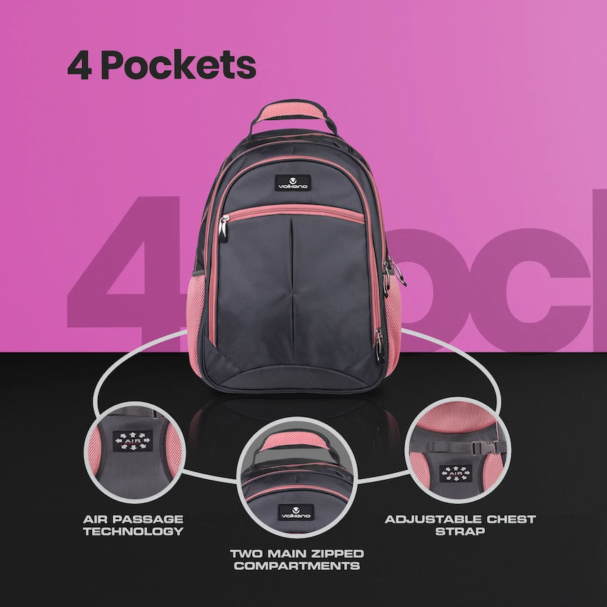 Volkano Orthopaedic Backpack 36l – Dark Grey/Pink