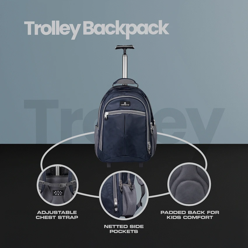 This orthopaedic, trolley backpack offers the convenience of two bags in one, combining the easy mobility of a trolley case with the versatility of a backpack. Equipped with smooth-rolling wheels and a sturdy extendable handle, it glides effortlessly through airports, stations, or city streets, reducing strain during travel. When needed, padded shoulder straps allow it to be worn comfortably as a backpack, providing flexibility for different situations. The spacious main compartment and multiple pockets ensure organized storage for books, laptops, clothes, or daily essentials, making it ideal for students, professionals, or travellers. Crafted from durable, high-quality materials with reinforced stitching, this trolley backpack is designed to be strong, practical, and reliable for everyday use or longer trips.
