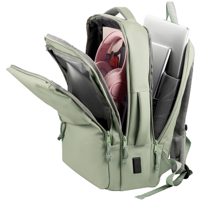 A high-quality laptop backpack with a padded compartment that fits laptops up to 15.6”, designed to accommodate all your business and overnight packing needs, whilst fitting neatly under the seat in front of you on an aeroplane. Multiple internal and external pockets provide ample storage for organizing chargers, cables, power banks, keys, wallets, water bottles, notebooks, documents, and other daily essentials. Made with durable, water-resistant materials and reinforced stitching for long-lasting use. Features adjustable padded shoulder straps, breathable back padding, a top handle for carrying, side handles for easy lift, and a secure zipper closure for added protection during travel or daily use. Large Capacity Water-resistant outer fabric 3 main compartments 17.3” Laptop compartment Large compartment for overnight goods Wet & Dry compartment USB Charging port Wide & padded shoulder straps Ultra padded & breathable back Adjustable chest clip