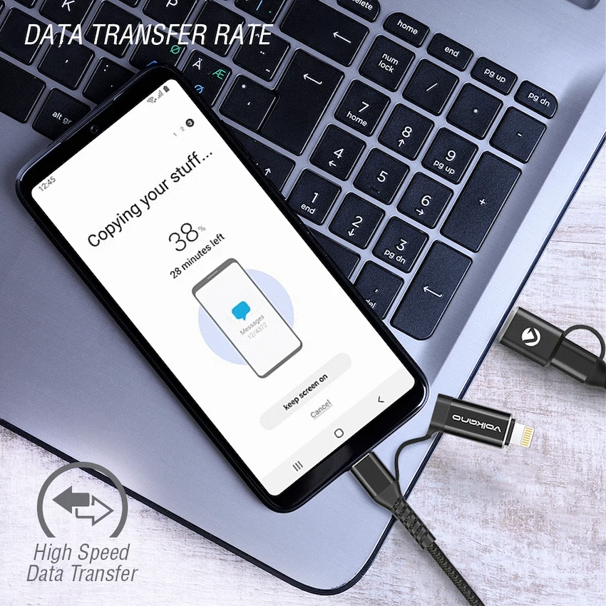 Volkano Weave series 4-in-1 charge & data cable – 1.8m/6ft 1.8m / 6ft High Speed Data Transfer Reinforced Cable Fast Charge