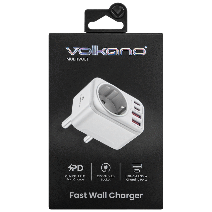 Make every trip easier with the Volkano travel adaptor that supports worldwide voltages and fast USB charging. Designed for travellers heading to or from South Africa, it handles 100-250V AC up to 10A, while the built-in USB power delivers USB-C Power Delivery up to 20W and Quick Charge up to 18W for compatible devices. That means you can top up phones and tablets quickly while still powering other electronics from mains. With USB-C and USB-A outputs, you can charge modern and legacy devices without hunting for extra chargers. PD profiles include 5V/3A, 9V/2.22A, 12V/1.67A via USB-C, while the USB-A port supports 5V/3A, 9V/2.0A, 12V/1.5A for fast adaptive charging. Just remember: this is a travel adaptor and does not convert voltage—always check your appliance ratings before use. Compact and ready for your hand luggage, it’s the practical power companion for holidays, business trips, and everything in between. Fast USB-C PD 20W – Speedy top-ups for compatible phones and tablets QC 18W Support – Quick Charge capability for supported USB-A devices Wide-Voltage Ready (100-250V) – South African Plug High Current Pass-Through (10A Max) – Suitable for powering compatible travel appliances Charge Multiple Devices – USB-C and USB-A outputs cover new and older cables Travel-Smart Reminder – Adaptor does not convert voltage; verify device ratings first