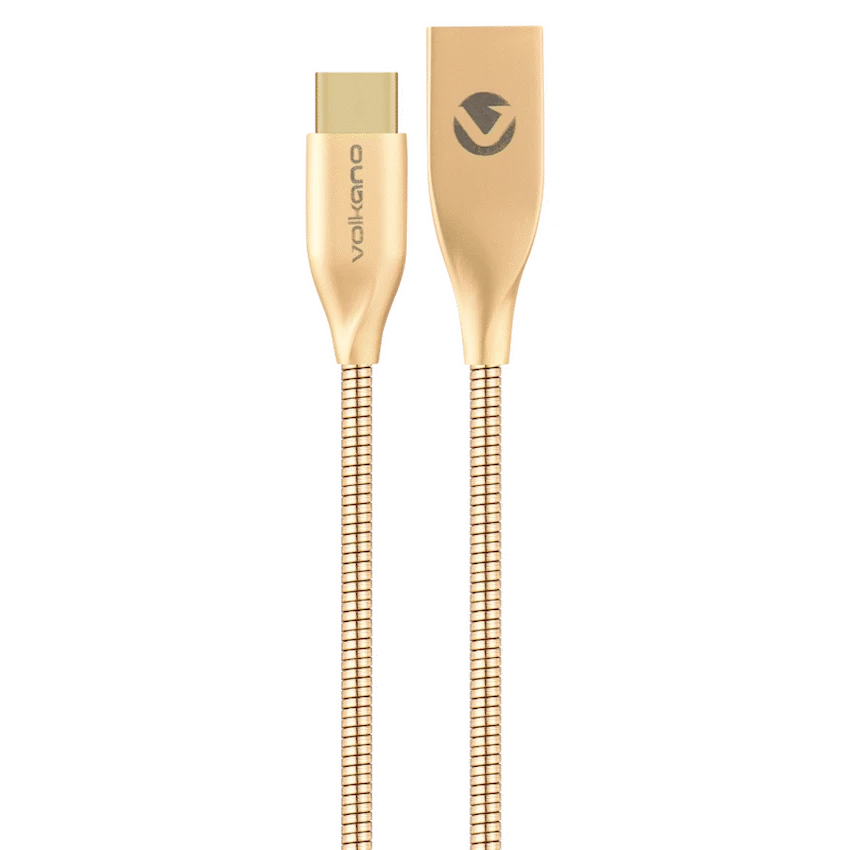 Volkano Iron Series Round Metallic Spring Type-C Cable 6ft – Champagne Gold