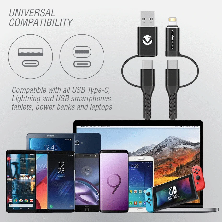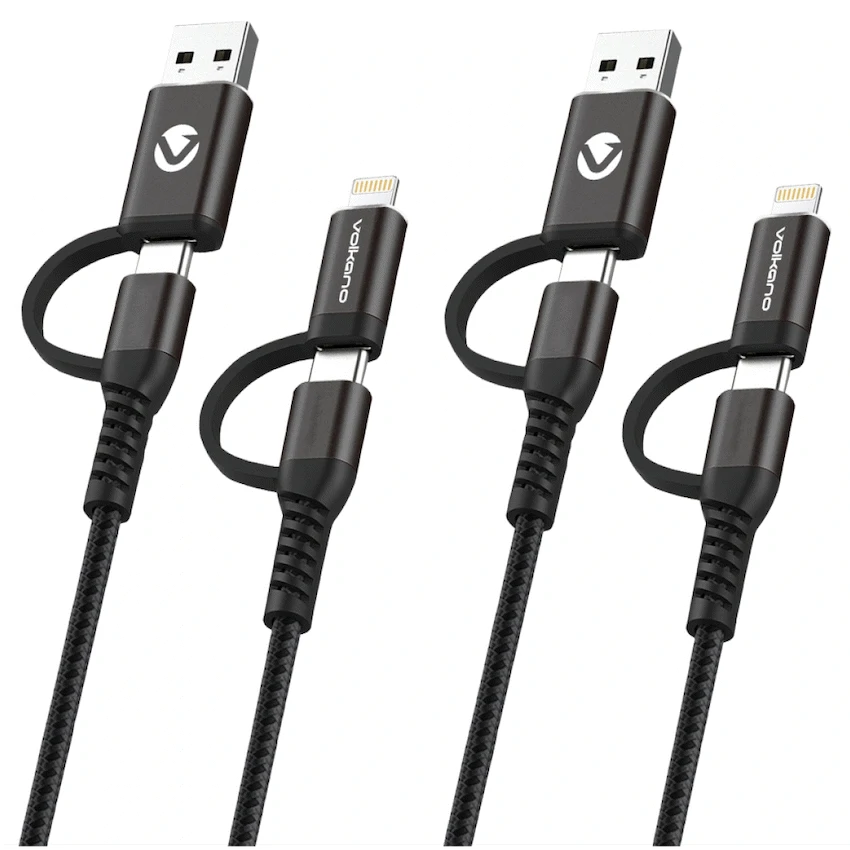 Volkano Weave series 4-in-1 cable Two Pack – 1.2m/4ft & 1.8m/6ft 1.2m / 1.8m High Speed Data Transfer Reinforced Cable Fast Charge