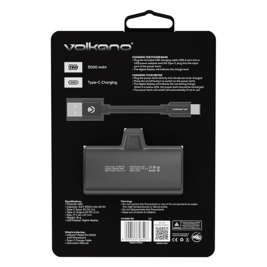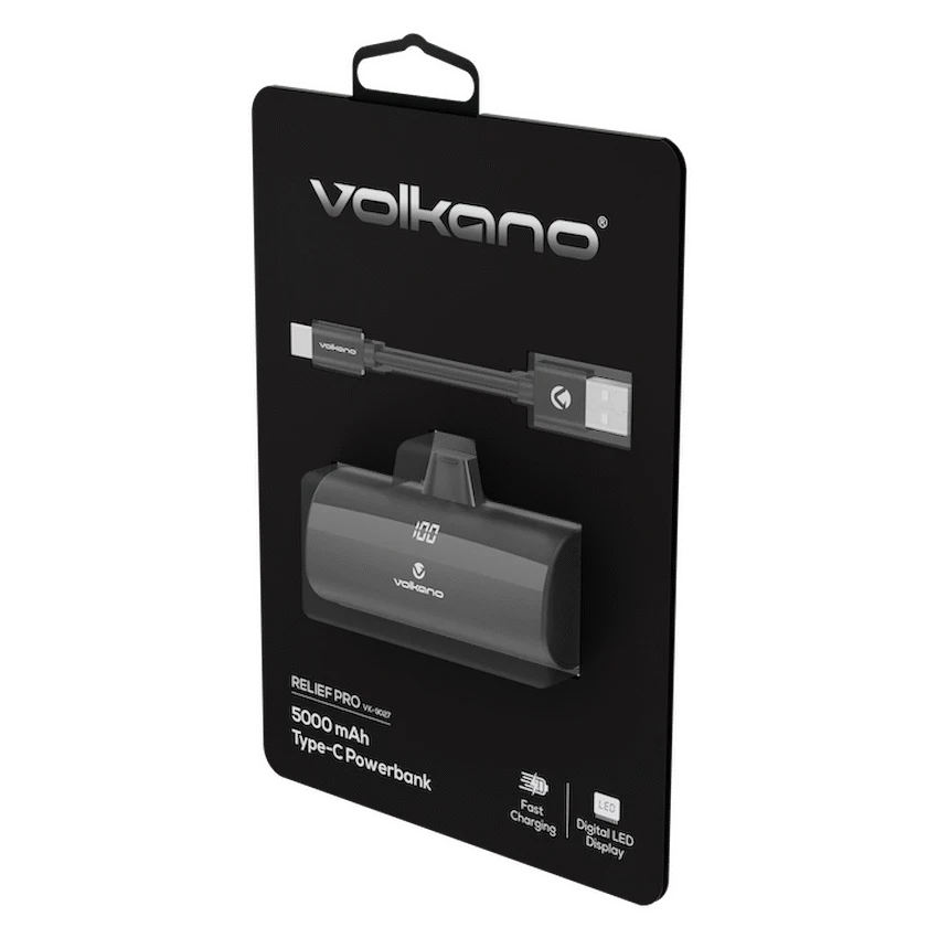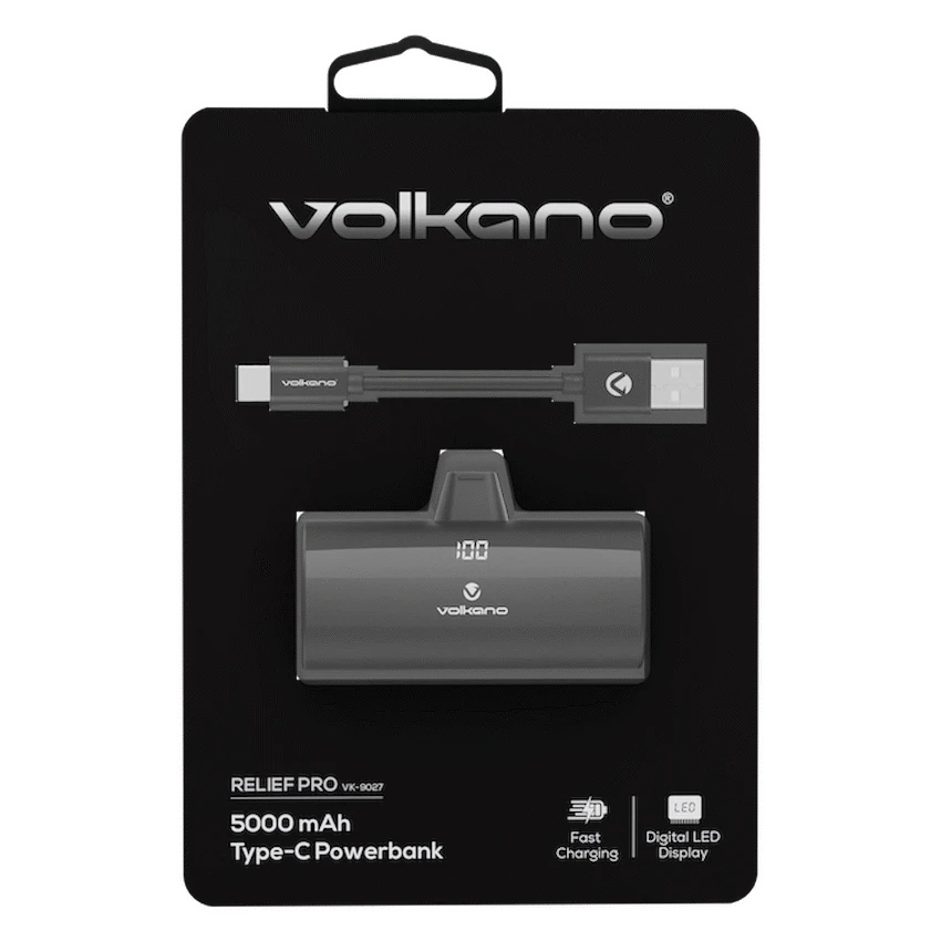 Volkano Relief Pro Power Bank, 5000mAh Type-C Direct plug in Type-C Charging 5000 mAh Fast Charging Digital LED Display
