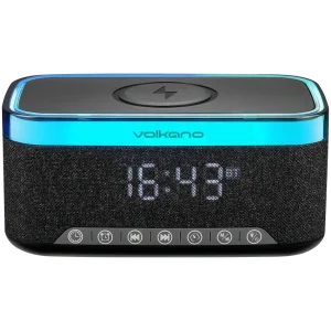 Volkano Radiant 2 Alarm Clock with Wireless Charging and Speaker - Black