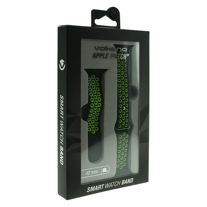 Volkano Smart Watch Band – Sport Silicone – iWatch 42mm -Black and Green S/L