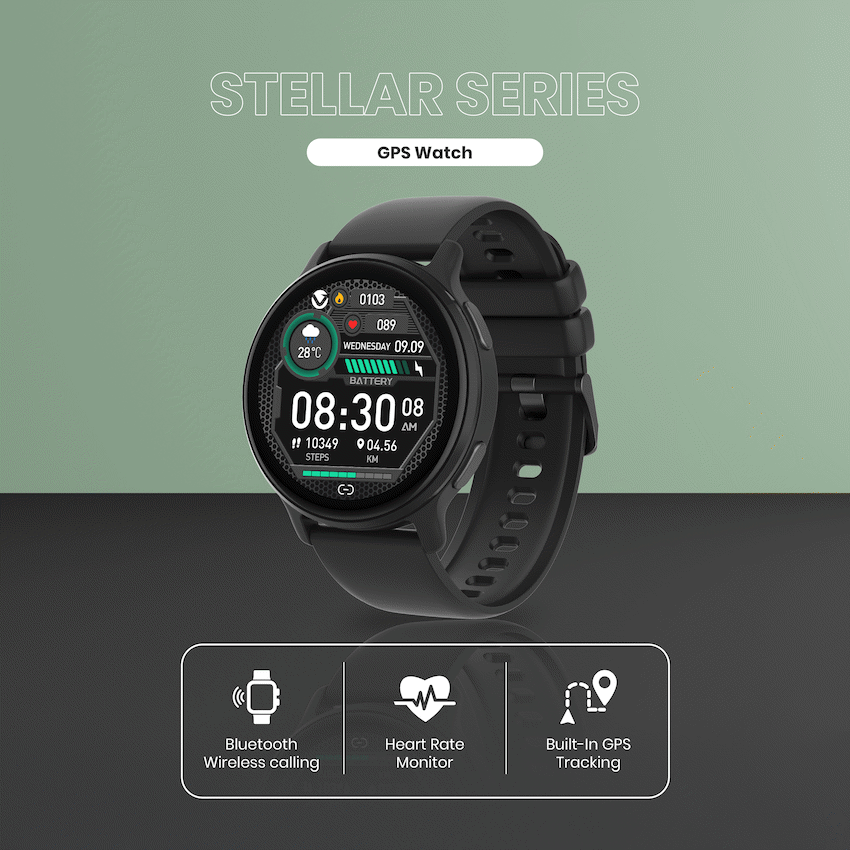 Take your fitness and lifestyle tracking to new heights with the Volkano Stellar Series GPS Watch. Engineered for performance, style, and convenience, this smartwatch combines 120+ multi-sport monitoring modes with powerful smart features to keep you moving and connected. Enjoy precise navigation and outdoor performance with built-in GPS tracking, supported by both GPS and BeiDou satellite systems for greater accuracy. With Bluetooth wireless calling, you can answer or make calls directly from your wrist—no phone needed in hand. Stay in control with the voice assistant, manage your media through camera shutter and music control, and never miss an update with message and call notifications. For health and wellness, the Stellar Series monitors heart rate, blood oxygen levels, steps, and calories, giving you insights into your overall activity and wellbeing. Fully compatible with Android 8.0+ and iOS 12+ devices, this smartwatch delivers versatility, connectivity, and all-day performance in a sleek unisex design. GPS Tracking Bluetooth Wireless Calling Health and Fitness Tracking IP68 Water Resistance Multi-sport Monitoring Heart Rate Monitor Voice Assistant